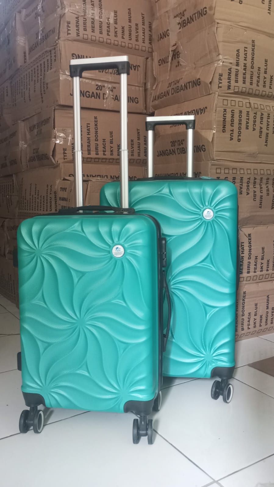 Koper hardcase bahan ABS ukuran 20 inc dan 24 inc warna tosca troli silver model kembang.